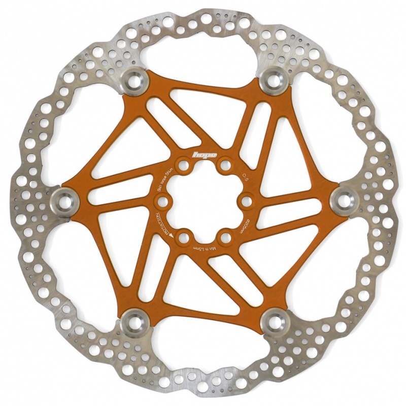 These Hope floating rotors are popular amongst both performance orientated riders and those just looking for something a little more colourful